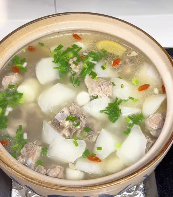 萝卜具有下气宽中、消食化痰的作用,山药能补脾养胃、生津益肺,排骨富含蛋白质和钙等营养成分。这道汤既能补充身体所需的营养,又有助于消化吸收,增强脾胃功能。