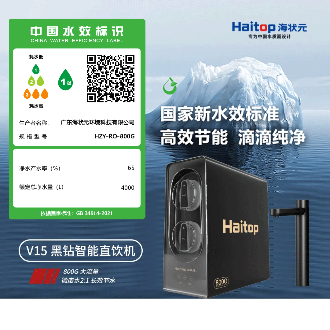 这款净水器采用进口技术,拥有 800G 的大流量,制水速度更快,即滤即饮无需等待,轻松满足日常饮水需求。同时,其内置的微废水比达到了 2:1,比传统净水机更省水,可谓是高效又节能。