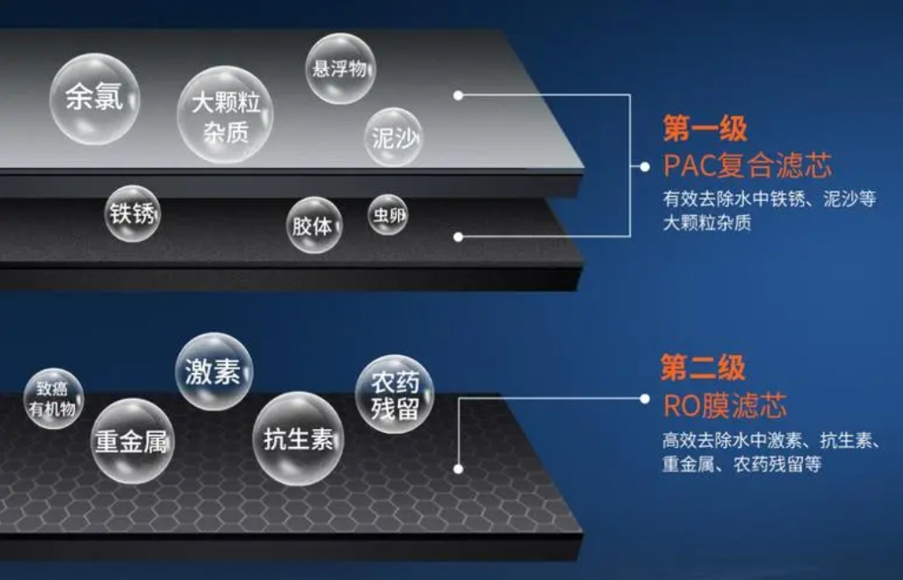 净水机最关键的部件当属滤芯,它直接决定了净化后水质的好坏。V15 黑钻大流量智能直饮机的过滤系统由渐进式精滤系统层层过滤,PAC 复合滤芯+RO 反渗透膜共同协作,能有效滤除水中的水垢、重金属、细菌等有害物质,让你获得清透健康的放心水。